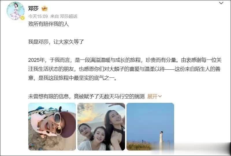 2026年1月15日,40岁演员邓莎在社交平台发布千字长文,以平静却决绝的笔触宣告告别与大18岁丈夫路行的14年婚姻。全文未提及“离婚”二字,却以“再也不愿困在一潭死水中”“打破僵局,遵从内心做出人生选择”的表述,完成了这场全网瞩目的情感解绑,引发网友广泛热议。